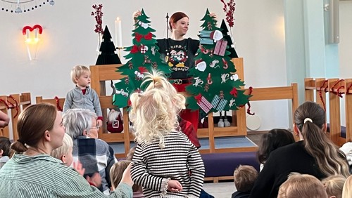 For de mange 3-6 årige plejer gudstjenesten at vare ca. 30 minutter, hvor alle skal være med til at synge, lytte til genfortælling af juleevangeliet, lave lyde og fagter.